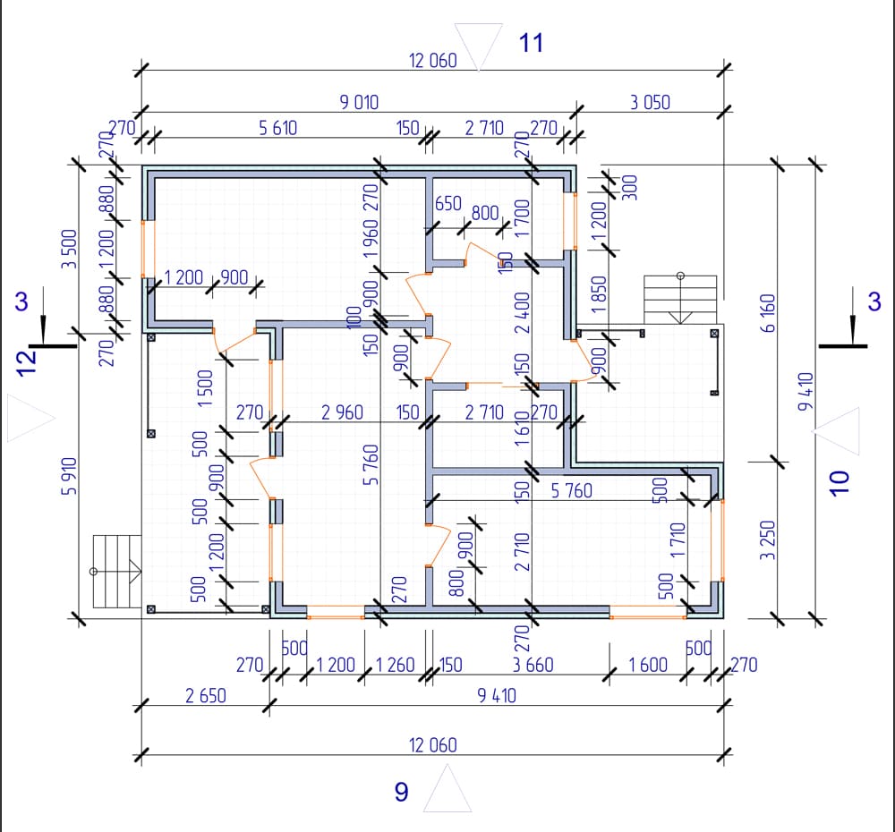 Дом с размерами 9,41х12,06 м. под заливку пенобетоном;