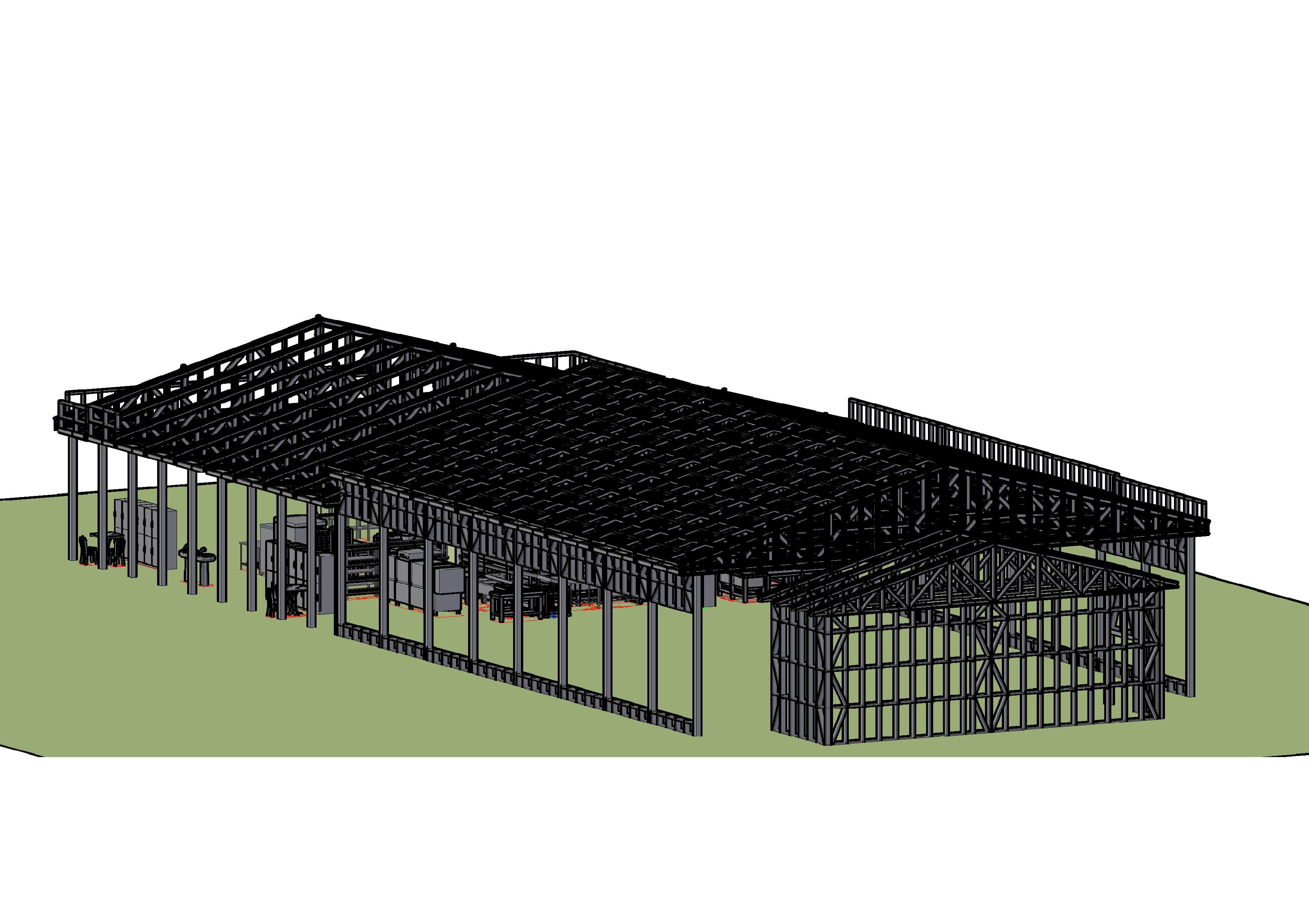 Столовая из ЛСТК в поселке Криница размерами 18 на 45 метров, была применена большепролетная ферма без опор. Повторим по запросу lstkrf@mail.ru