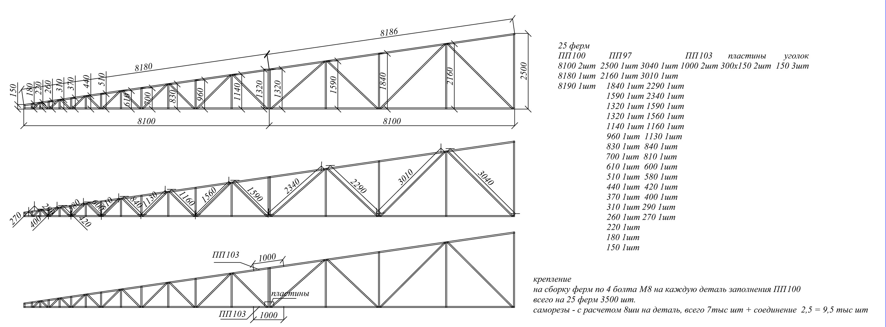 Для каждого объекта строительства мы подготавливаем сборочные чертежи, представленного ниже, образца:
