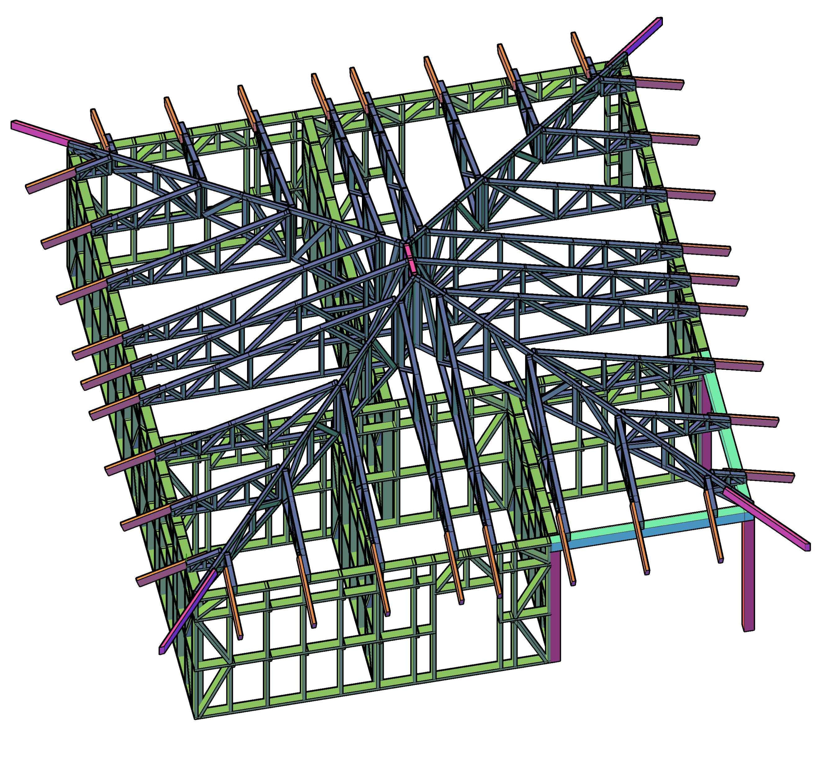 Кровля вальмовая по фермам.