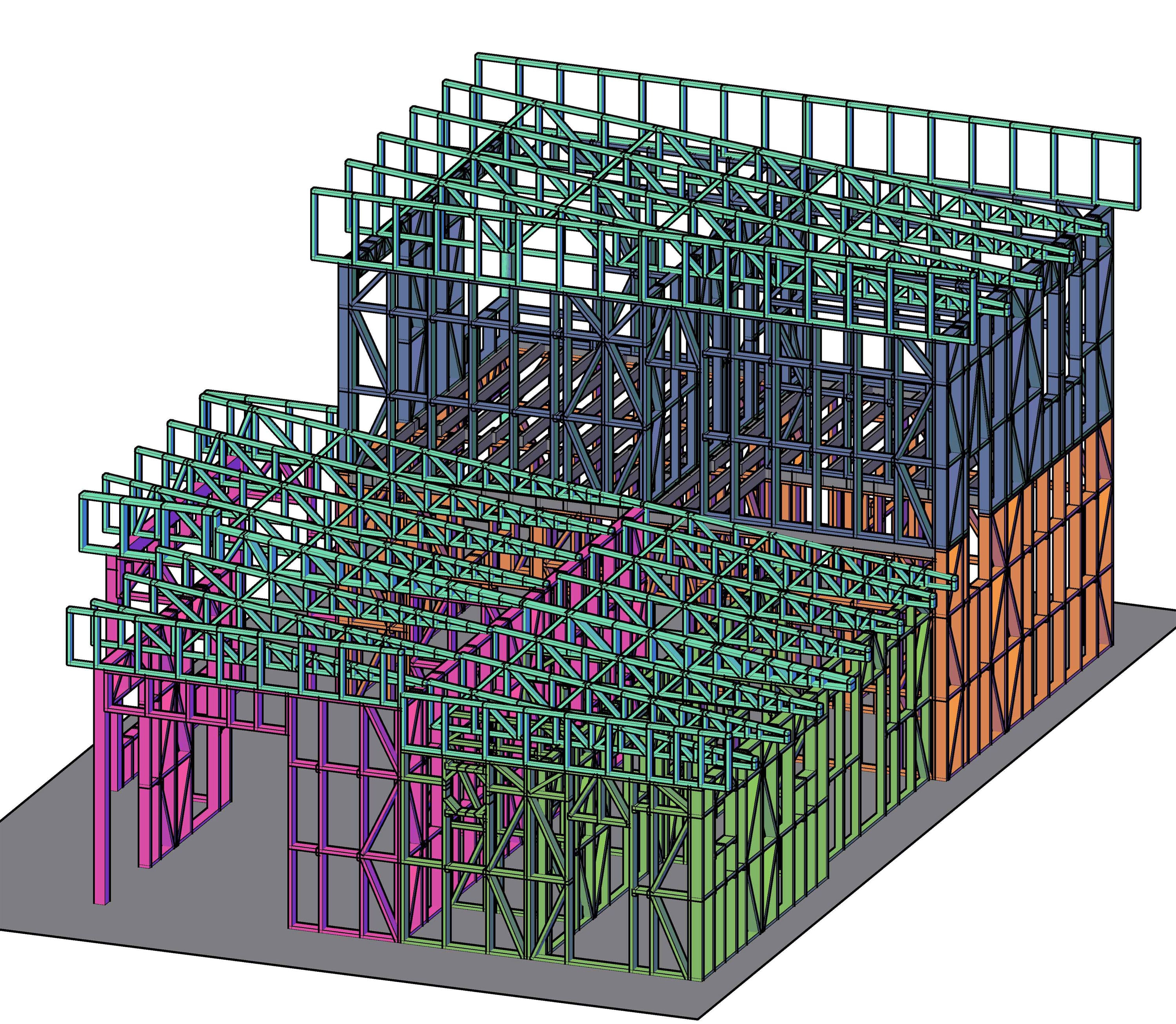 Жилой каркасный дом из ЛСТК: стойки несущих стен из оцинкованных профилей ПП150/1.2; внутренние перегородки ПП100/1.2; перекрытие ПП203/1.5, ПСЖ200/1.5; несущие балки ПП150/1.2, ПП203/1.5, ПСЖ200/1.5; кровля ПП150, ПП75, ПП78, ПП56, ПШ40, уголок 45*45. Вес каркаса ЛСТК 6 083 кг. Крепление осуществляется винтами самонарезающими HCP-R 4,8*19 мм (8000 шт), HD-R 5,5*19 мм (3500 шт). Если Вас заинтересовал данный проект, вы хотите такой или подобный дом, просто позвоните.