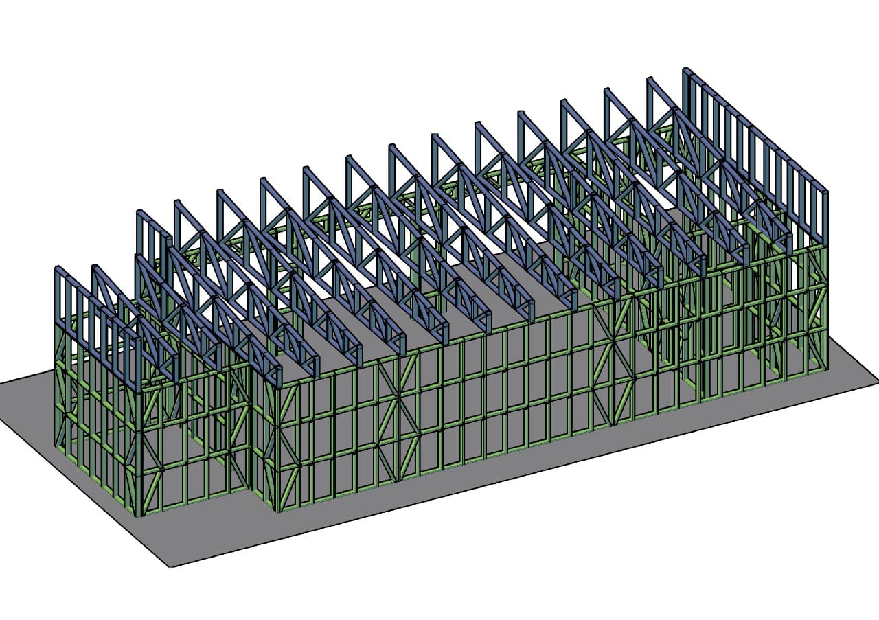 Каркас ЛСТК из сотого профиля ПП-100 (почти три тонны).