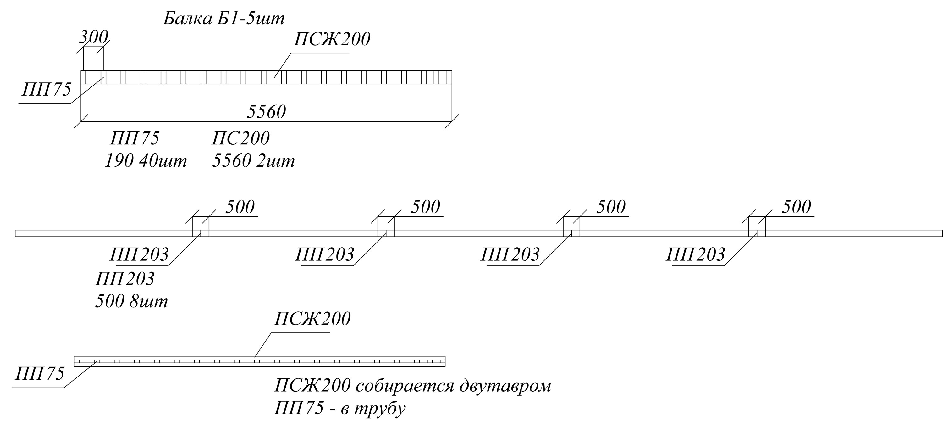 Для каждого объекта строительства мы подготавливаем сборочные чертежи, представленного ниже, образца: