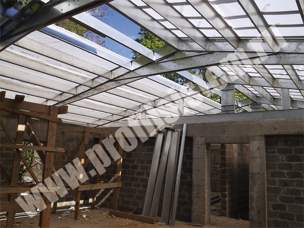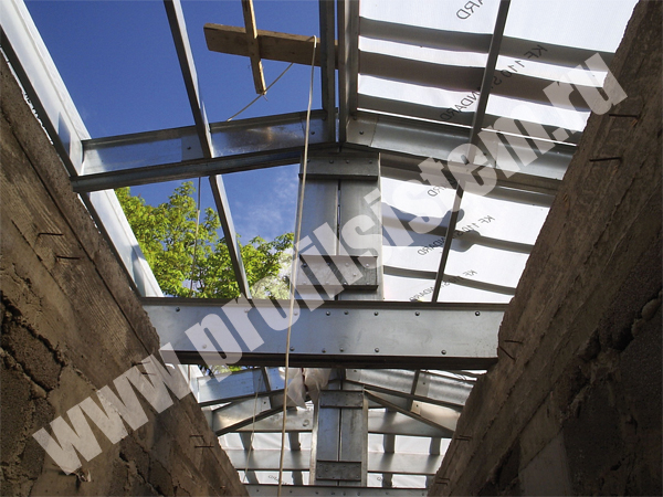 Монтаж кровли ресторана из ЛСТК.
